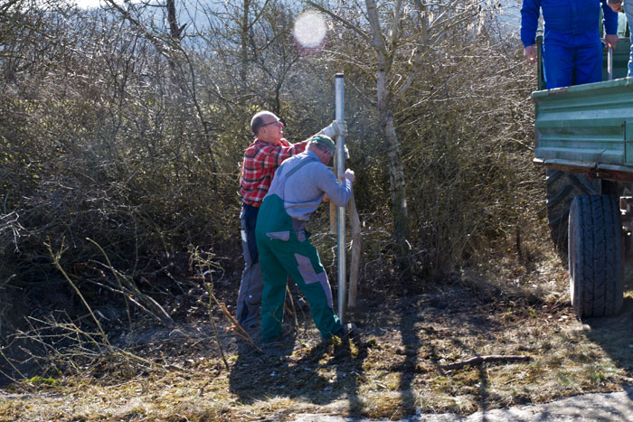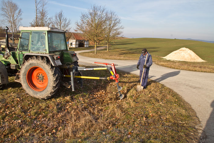 Die weiteren Arbeiten an den Rundwanderwegen begann dann wieder am 23.Februar 2019. An diesen Tag wurden die Pfostenlöcher für die Rohre zum anbringen der Schilder für den Rundwanderweg gebohrt. Am 27. Februar erfolgte das einbetonieren dieser Halterohre. Der Arbeitstrupp an beiden Tagen bestand aus Mitglieder und Freiwilligen Helfern des Vereins. Diesen gilt ein herzliches Dankeschön. Das Technische Gerät wurde dem Osingverein aus den Osinggemeinden zur Verfügung gestellt.