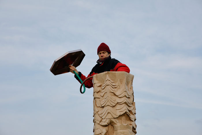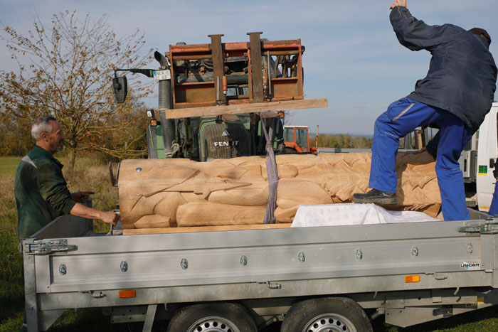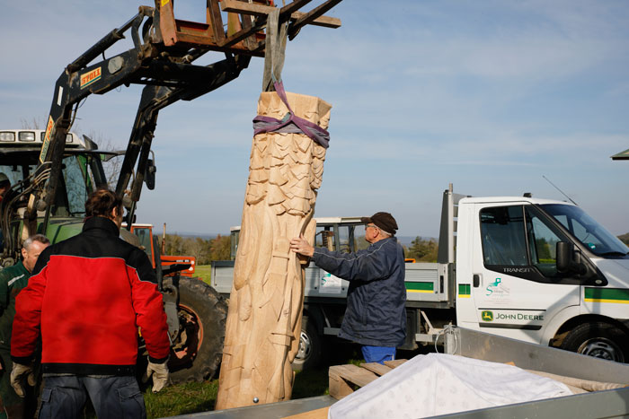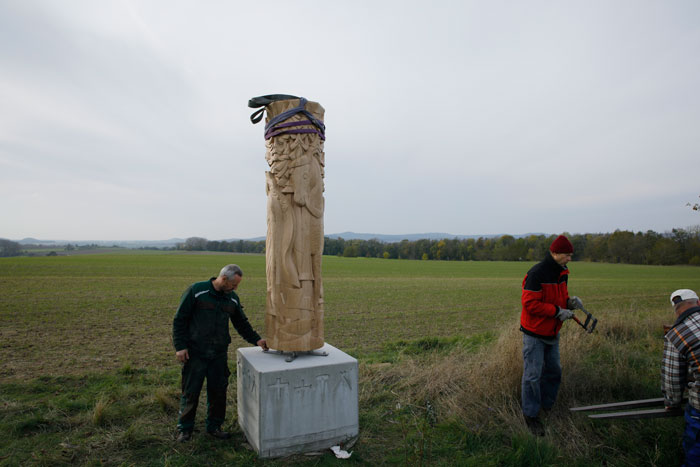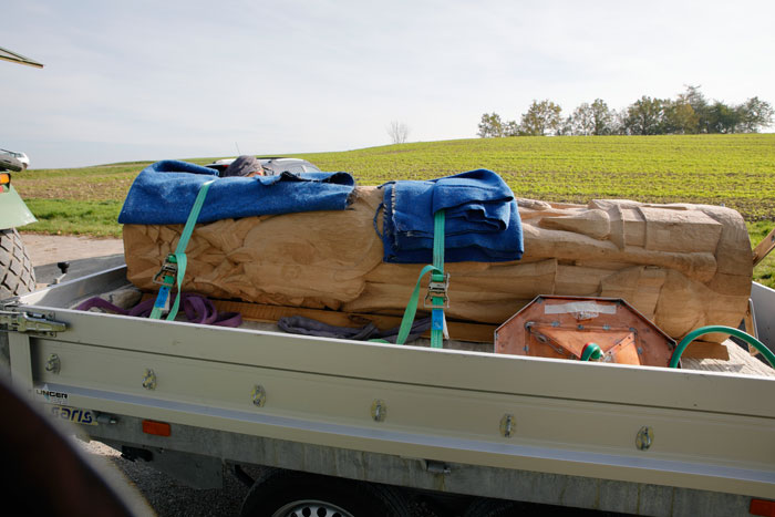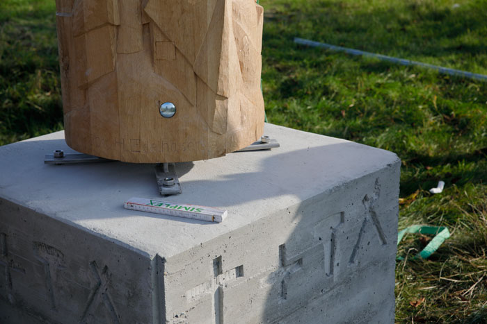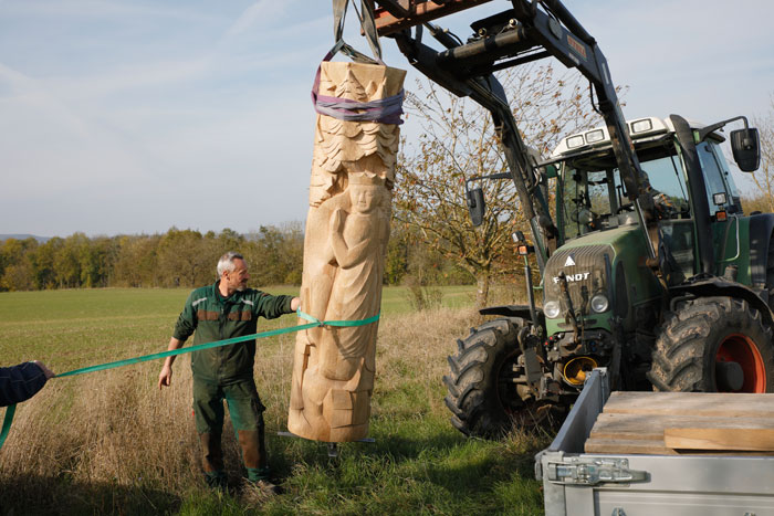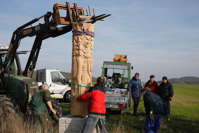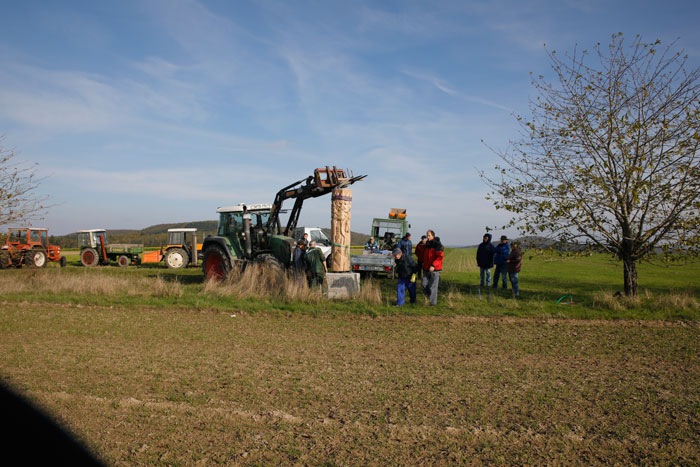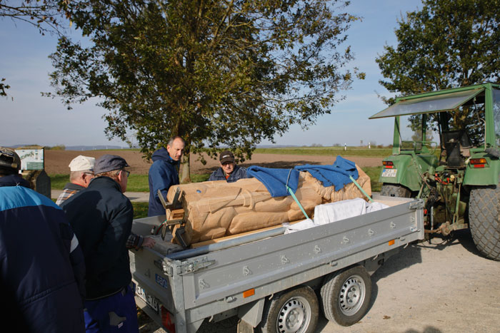 Im Beisein von etlichen Bürgern der Osinggemeinden, des Bildhauers Hellmut Edelhäuser aus Uffenheim und des Bad Windsheimer Bürgermeisters Bernhard Kisch, wurde die Statue vom Treffpunkt Osinghaus zum dafür vorgesehenen Sockel transportiert. Mitglieder der Vorstandschaft des Vereins zur Osingdokumentation e.V. und Helfer waren mit schwerem Gerät daran beteiligt. Das aufstellen nahm einige Stunden in Anspruch.