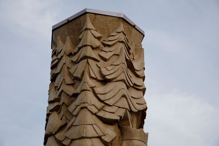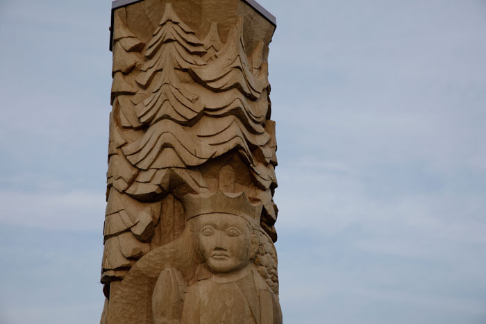 Die 2,20 m hohe Eichenholz-Statue richtet ihren Blick gegen Südwesten über den Osing. Auf den Kopf der Statue befindet sich ein Kupferdach mit Wasserablauf. Nahezu zwei Jahre brauchte der Künstler zur Erstellung der Statue.