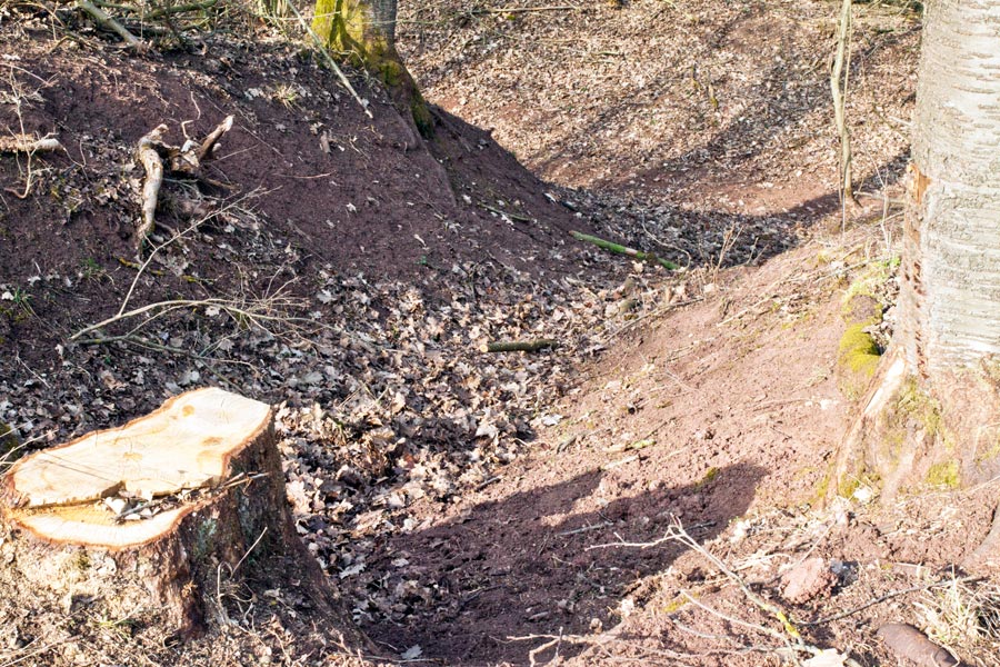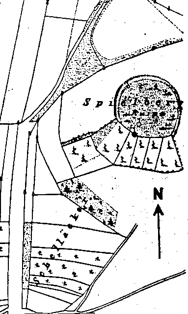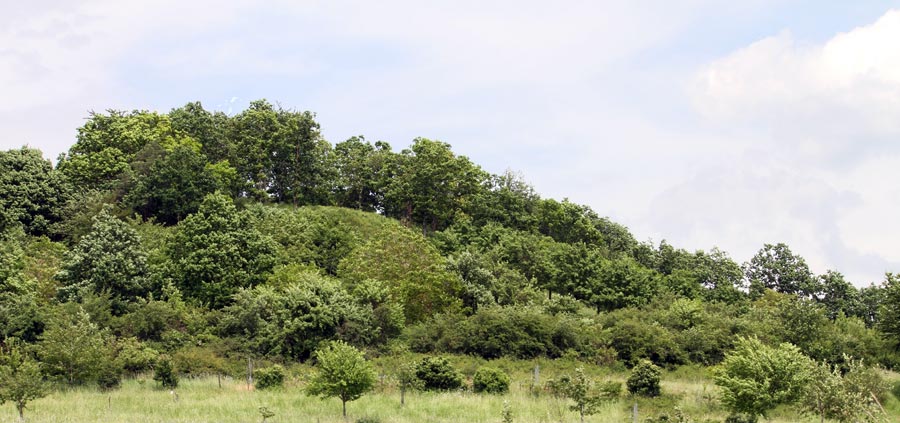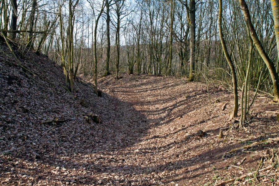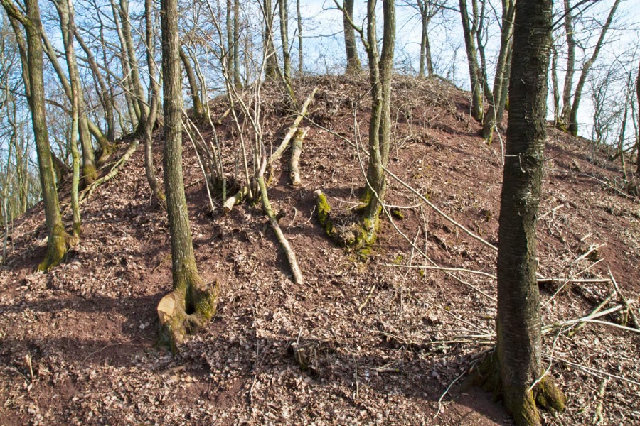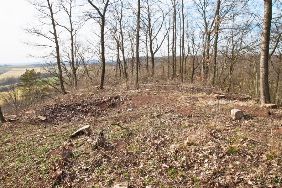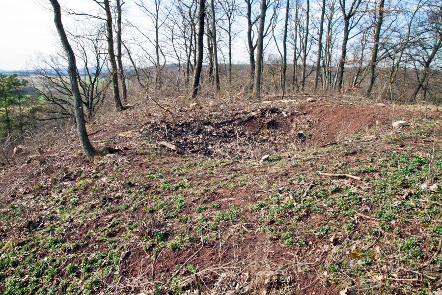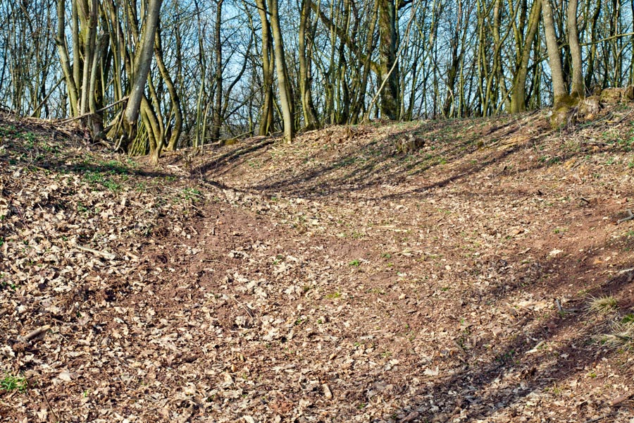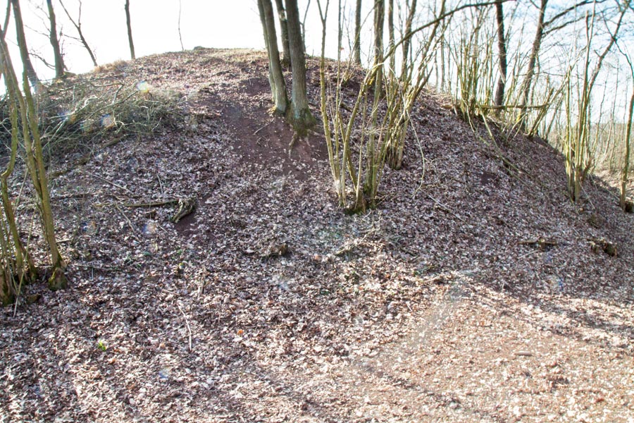 Am südlichen Hangfuß des Turmhügels ist heute keine Befestigung offensichtlich. Eine leichte umlaufende Terrassierung liefert jedoch den Hinweis, dass hier ehemals ein Hanggraben angelegt gewesen sein könnte.
