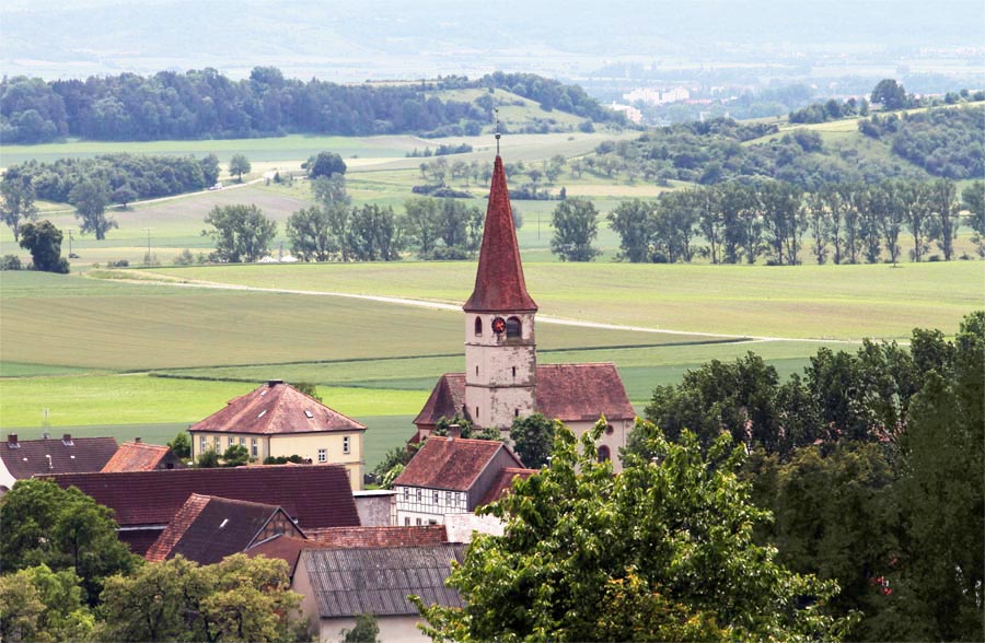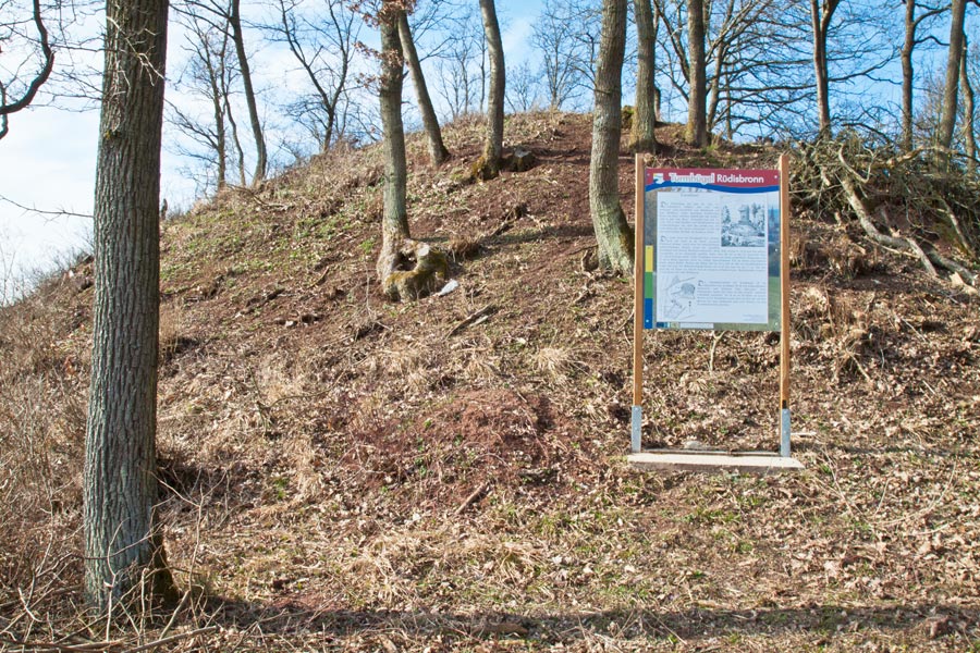 Die Wehranlage Spielberg, 420 Meter über dem Meeresspiegel, befindet sich zwischen Rüdisbronn und Rehhof. Sie entstand bereits im 10.-11. Jahrhundert, in der Zeit des frühen fränkischen Burgenbaues und wurde wahrscheinlich bis ins Mittelalter als Wehranlage benutzt. Bereits 1357 wird der Spielberg als Burgstall genannt, im Besitz von Brendelin (Hildebrand) von Saunsheim (Seinsheim), dessen Enkel, Erkinger von Seinsheim und nach der Erhebung in den Freiherrnstand der erste Freiherr zu Schwarzenberg war. 1463 verschreibt Kunigunde von Thüngfeld, eine geb. von Seinsheim an die Kirche in Gerbrunn ihre Gilten auf dem Spielberg bei Rüdisbronn. Der Turmhügel hat eine ovale Form. Diese ovale Form war offenbar durch den etwas in die Länge gezogenen Gipfelgrad bedingt. Durch einen tiefeingeschnittenen, halbkreisförmigen Graben ist der eigentliche Turmhügel vom übrigen Bergkegel getrennt. Seine Höhe beträgt ca. 10 mtr. und sein unterer Durchmesser ca. 40 mtr. Der Durchmesser der Querachse beträgt ca. 30 mtr. Der Ringgraben selbst hat eine Breite von ca. 4-8 mtr. Zur weiteren Sicherung der Wehranlage umzogen den Berg in tieferen Lagen noch einige Gräben mit Wällen. Vermutlich stand hier ein Wohnturm von ca. 8 qm. Es wurde auch schon nach Turmfundamenten gegraben aber anscheinend ergebnislos. Der nördlich vom Spielberg gelegene Rehhof ist vermutlich der zur Befestigungsanlage gehörige Hof.